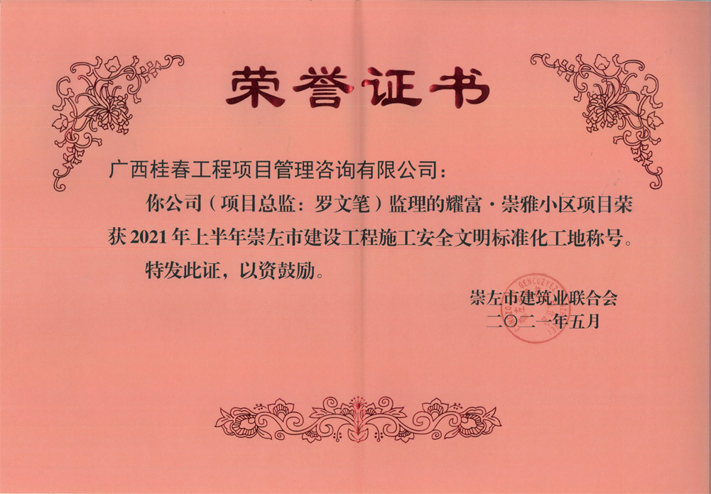 2021年上半年崇左市建设工程施工安全文明标准化工地-耀富·崇雅小区-总监:罗文笔