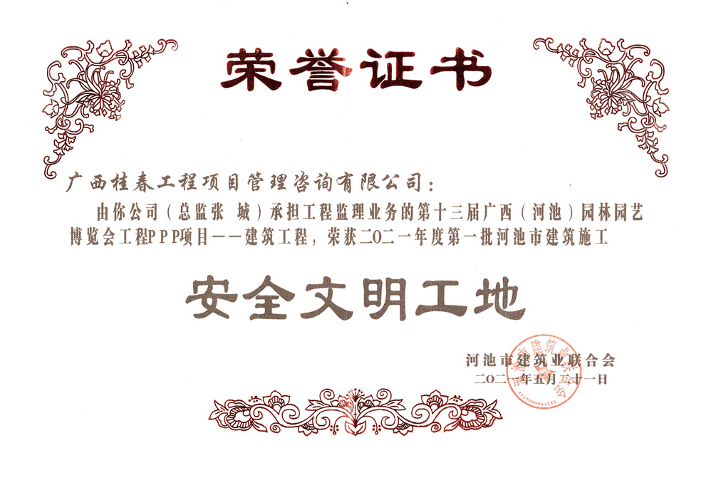 2021年度第一批河池市建筑施工安全文明工地奖-第十三届广西(河池)园林园艺博览会工程PPP项目--建筑工程-总监:张城