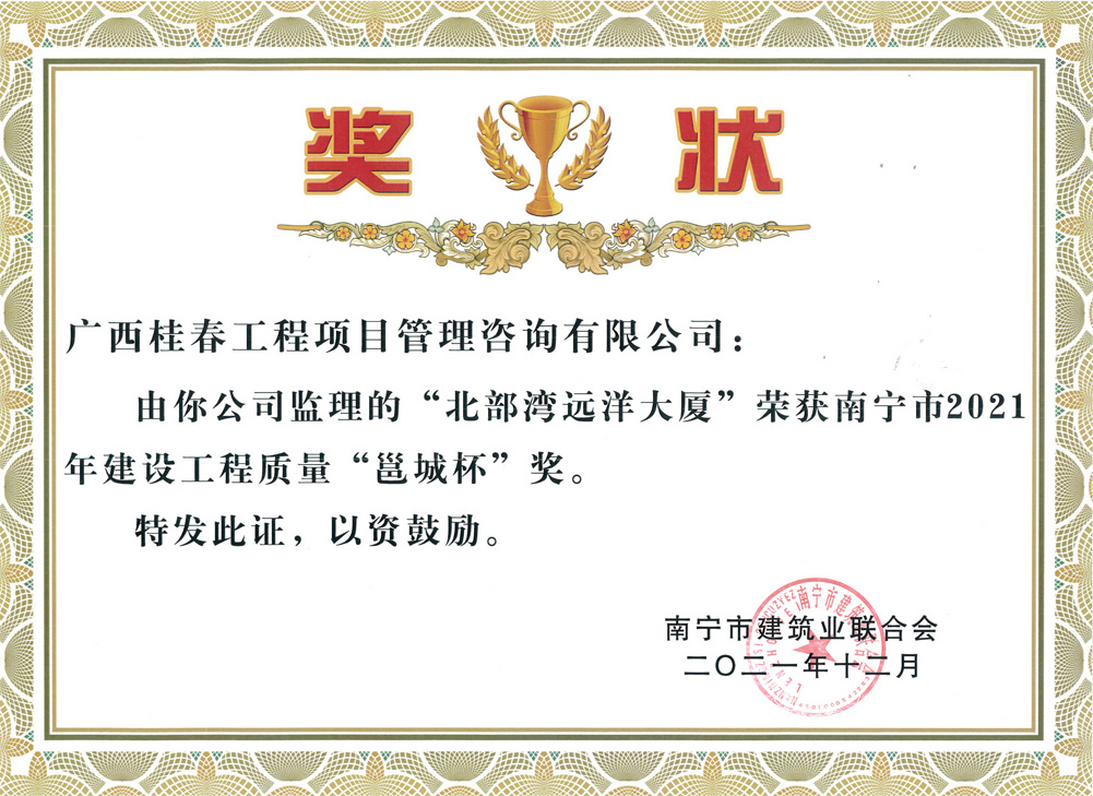 2021年建设工程质量“邕城杯”奖-北部湾远洋大厦-总监:杜明华
