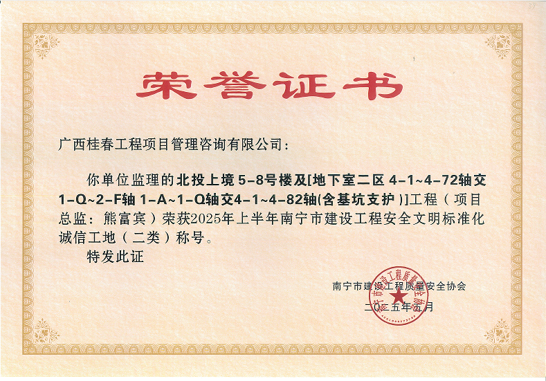 2025年上半年南宁市建设工程安全文明表转化诚信工地(二类)-北投上境5-8号楼及[地下室二区4-1~4-72轴交1-0~2-F轴 1-A~1-0轴交4-1~4-82轴(含基坑支护}]工程