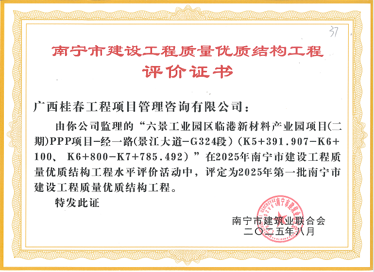 2025年第一批南宁市建设工程质量优质结构工程-六景工业园区临港新材料产业园项目(二期)PPP项目-经一路(景江大道-G324段)(K5+391.907-K6+100、K6+800-K7+785.49...
