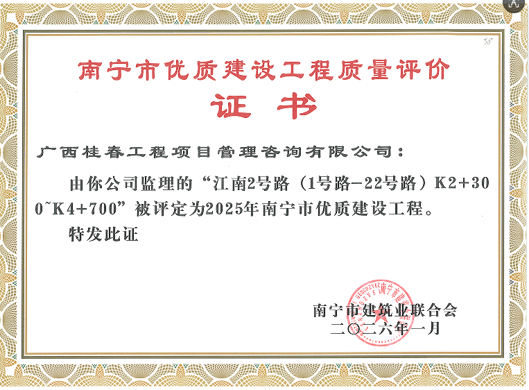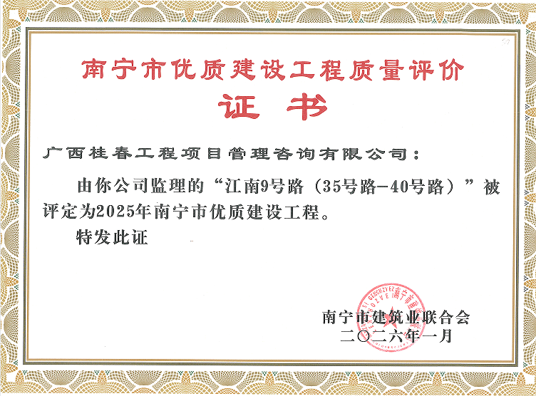 2025年第二批南宁市建设工程质量优质结构工程-江南9号路(35号路-40号路)