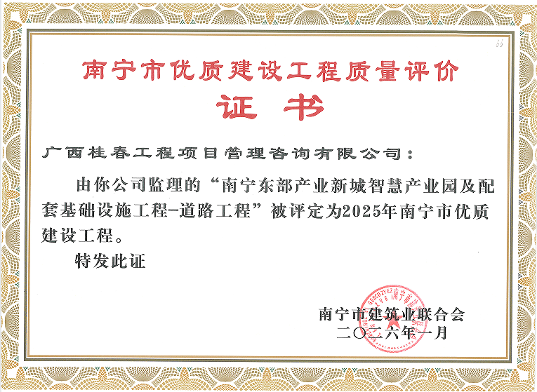 2025年第二批南宁市建设工程质量优质结构工程-南宁东部产业新城智慧产业园及配套基础设施工程-道路工程
