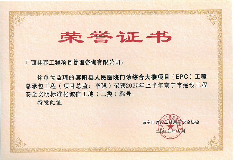 2025年上半年南宁市建设工程安全文明表转化诚信工地(二类)-宾阳县人民医院门诊综合大楼项目(EPC)工程总承包工程