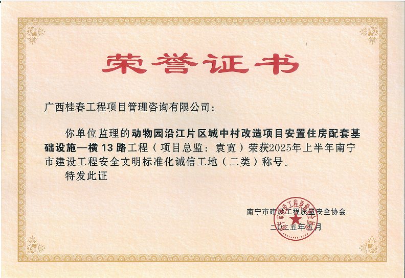 2025年上半年南宁市建设工程安全文明表转化诚信工地(二类)-动物园沿江片区城中村改造项目安置住房配套基础设施一横13路工程