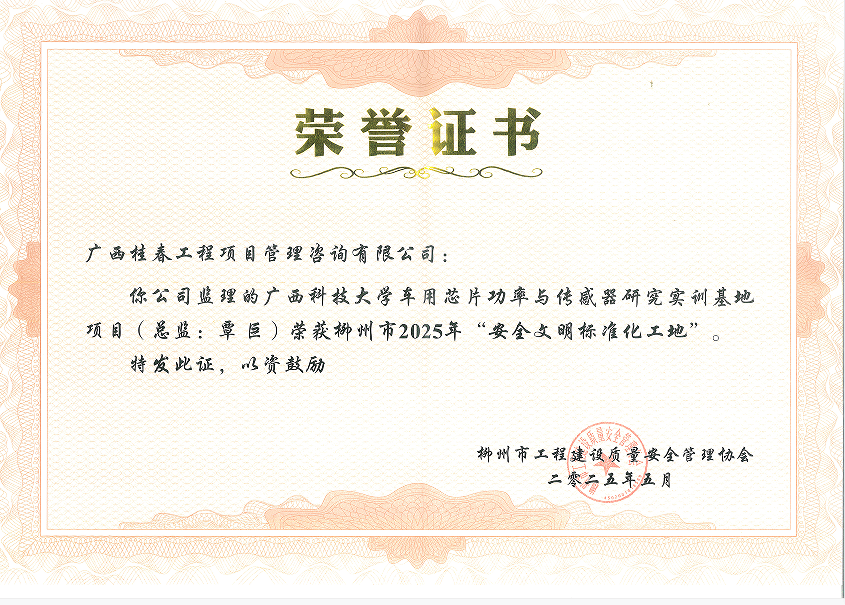 柳州市2025年“安全文明标准化工地”-广西科技大学车用芯片功率与传感器研究实训基地项目